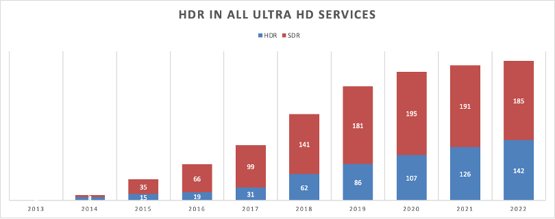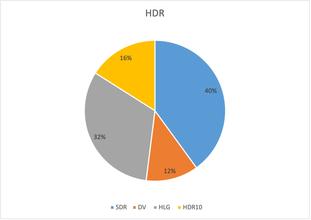 HLG is the dominant HDR format used with 33%, with 42% SDR still very present, and 57% in the service tracker.