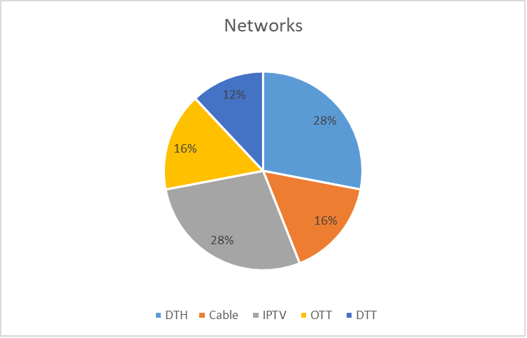 The chart above shows the distribution technology for the 25 services carrying Ultra HD from the Beijing Olympics. As a comparison, the one below shows a similar distribution as in the service tracker; We see a similar (balanced) split across all types of network distribution.