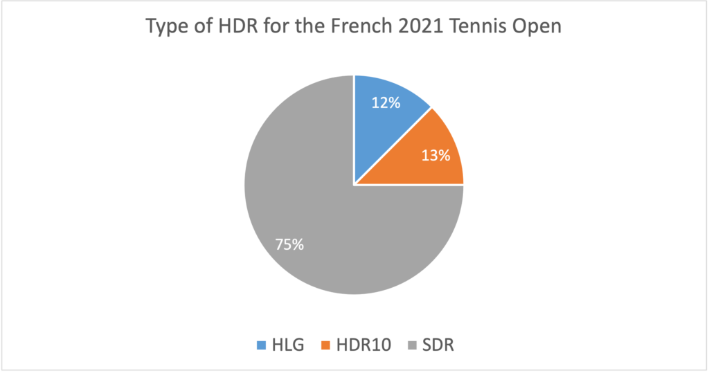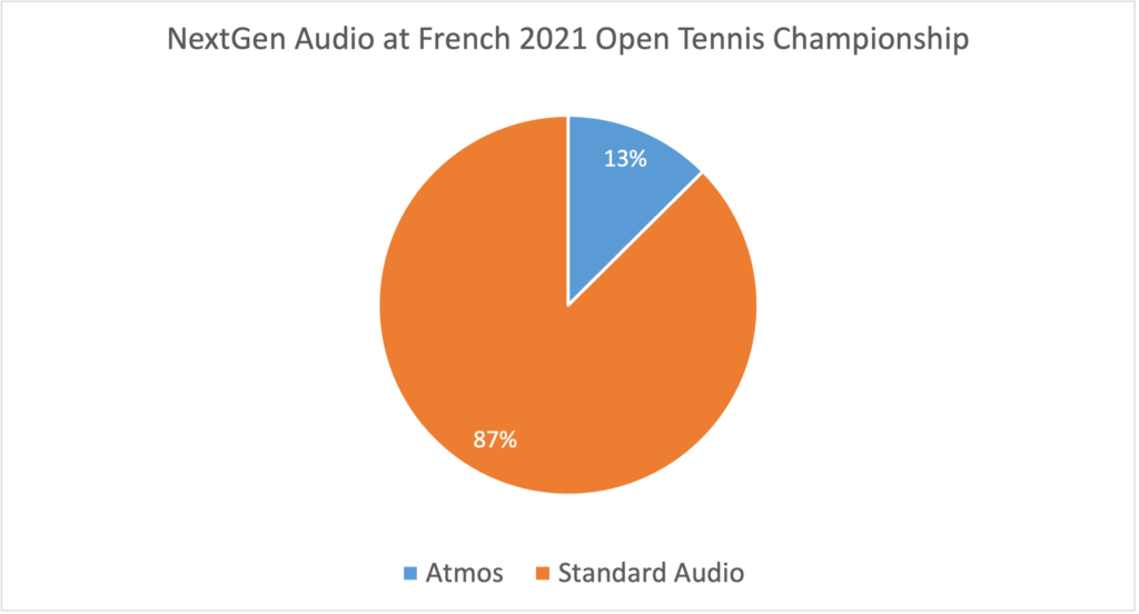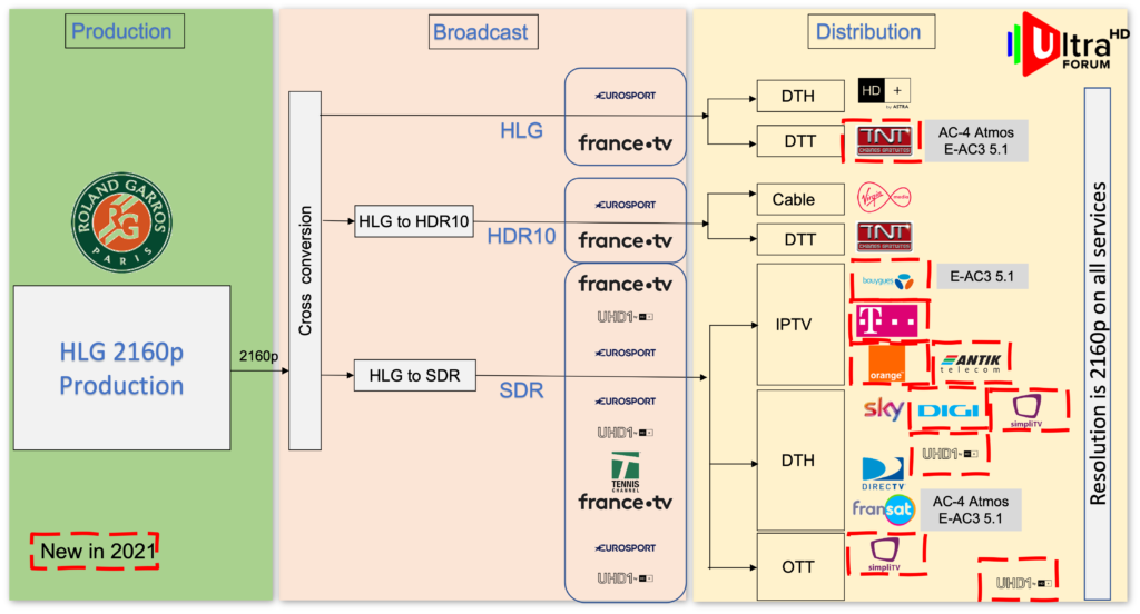 The 2021 French Open was shown with some UHD component technologies by at least 16 commercial services that we counted, representing a 100% increase over last year.