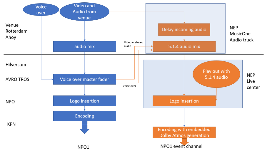 The regular NPO1 broadcast of the European Song Contest (ESC) was already designed and being built when we decided to add an Atmos signal.